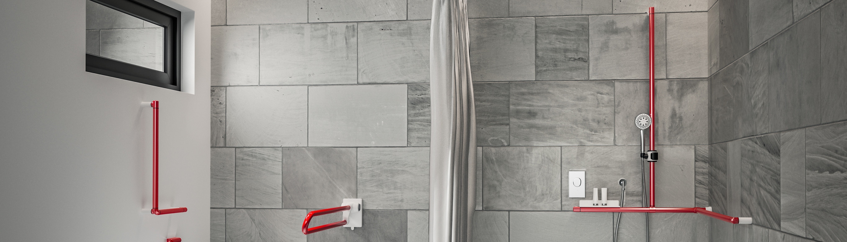 Dementia-friendly bathrooms require thoughtful solutions – this is exactly where ColorLine comes in. The intense red or custom colours of our rails deliberately stand out from the mostly neutral tiles and walls. This strong colour contrast significantly improves visual perception, makes it easier to identify gripping areas, and gives people with cognitive or motor impairments more security and independence in everyday life.